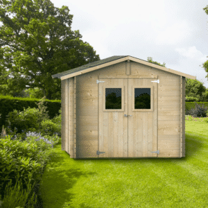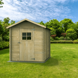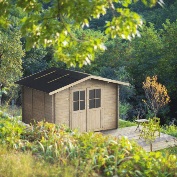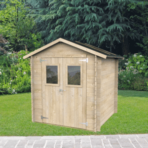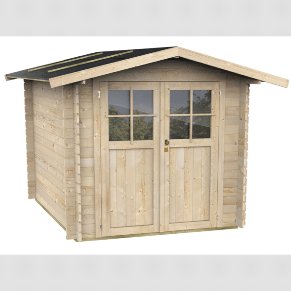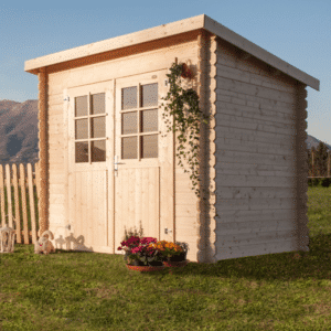 Casetta con perline ad incastro block-house; spessore pareti: 25 mm. Porta doppia finestrata con pomolo e serratura. Pavimento e guaina ardesiata inclusi. Disponibile in quattro dimensioni (S, M, L); scegli una delle opzioni per procedere all’acquisto.