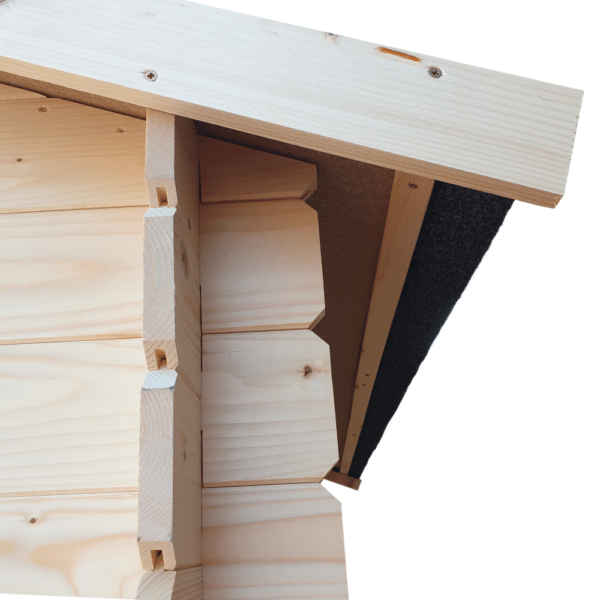 - Tetto realizzato con perline ad incastro M-F in legno di Abete, spessore 16 mm